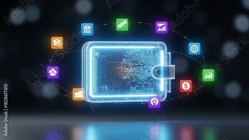 © Saqib Burki, Fototapeta premium Idea for a fintech digital wallet with neon components