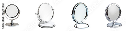 © Rizia, Fototapeta premium Identical chrome cosmetic mirrors showcase different base styles on a transparent background Generative AI