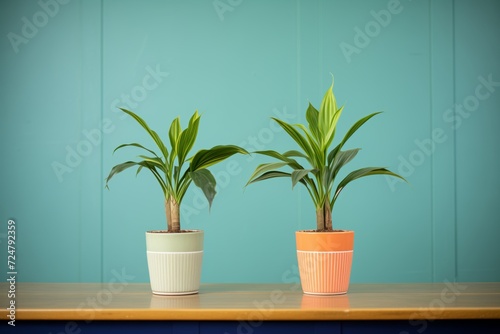 Fototapeta premium identical twin plants in different colored pots