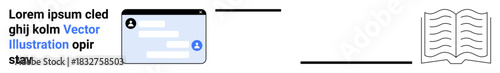 Fototapeta premium Identity verification, cybersecurity, digital learning, data access, online profiles, knowledge sharing. A user profile interface linked to an open book icon. Identity verification and cybersecurity