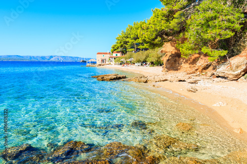 Fototapeta premium Idyllic beach on coast of Brac island near Bol town, Brac island, Croatia