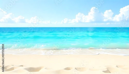 Obraz premium Idyllic beach scene with turquoise water and white sand and blue sky with clouds