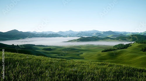 © FarhaStock, Fototapeta premium Idyllic Foggy Morning in Serene Countryside