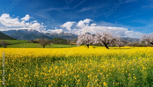© Rocky, Obraz premium Idyllic Meadow Landscape With Wildflowers Rolling Hills And Dramatic Skies