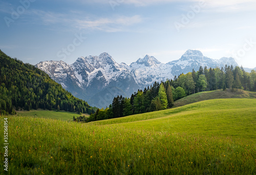 © auergraphics, Fototapeta premium Idyllic mountain landscape with snowy mountains in the background