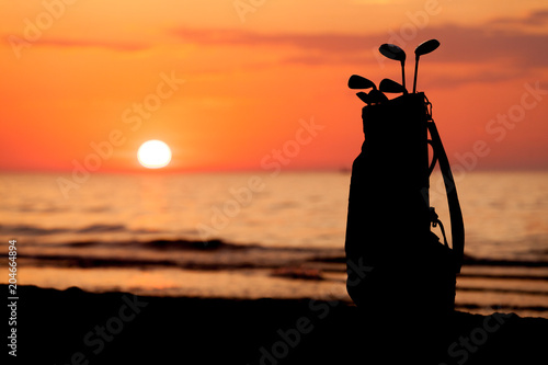 Fototapeta premium Idyllic shot of sunset and golf clubs