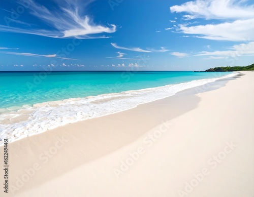 Obraz premium Idyllic tropical beach scene with pristine white sand and azure turquoise ocean water