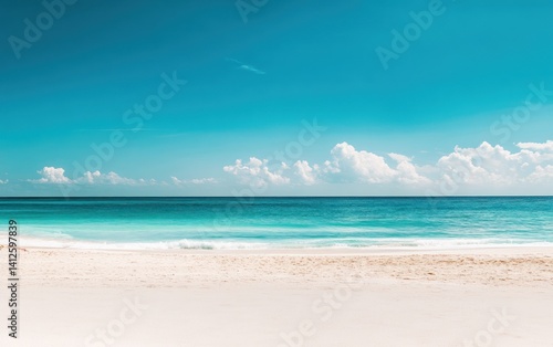 © Alfan Mask, Obraz premium Idyllic Tropical Beach with Turquoise Water and White Sand Under a Blue Sky