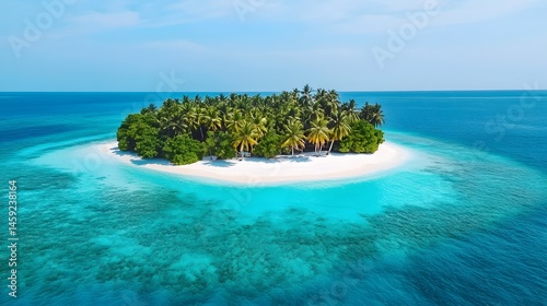 Fototapeta premium Idyllic tropical island with clear turquoise waters and palm trees