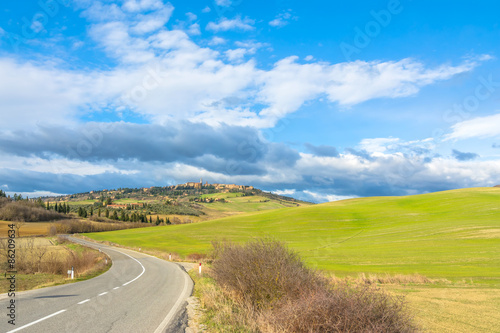 Fototapeta premium Idyllic Tuscan landscape and Pienza skyline, Val dOrcia, Italy