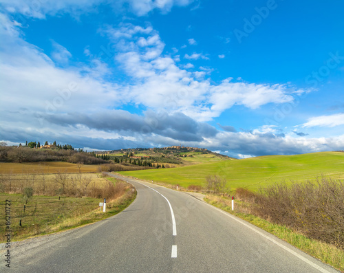 Fototapeta premium Idyllic Tuscan landscape and Pienza skyline, Val dOrcia, Italy