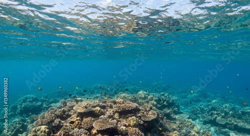 © Firman Dasmir, Fototapeta premium Idyllic underwater seascape featuring a vibrant coral reef ecosystem