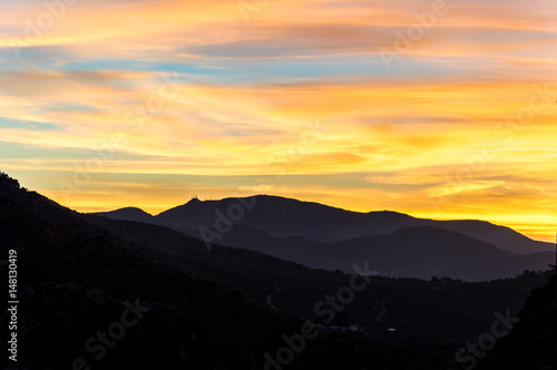 Obraz premium Idyllic view of sunset in the mountains on a day in March, captured in Moclín, Andalusia, Spain