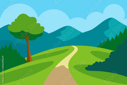 © AIYAL BI, Obraz premium Idyllic Winding Dirt Path Through Meadow