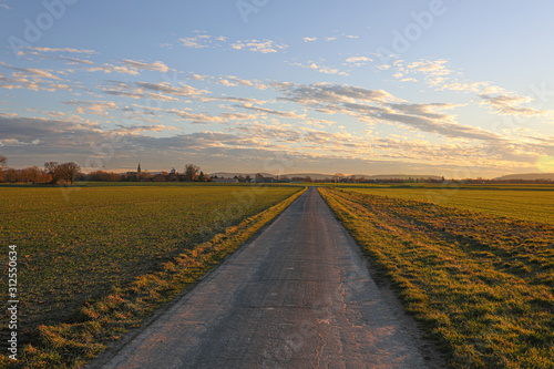 © KrischiMeier, Naklejka premium Idyllischer Weg zwischen Feldern im Sonnenuntergang