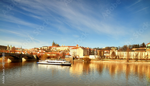 Obraz premium iew on St. Vitus Cathedral and Prague Castle across Vltava river