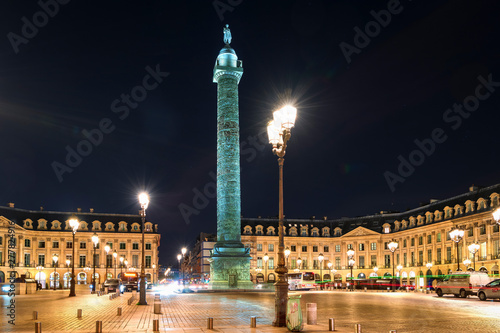 Naklejka premium ight view of Vendome Place with bronze column with bas-relief carvings topped by a statue of Napoleon. Copy space in sky.