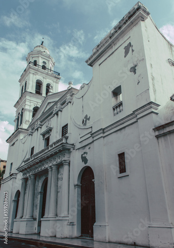 © fabiodavid, Fototapeta premium Iglesia con paisaje nublado