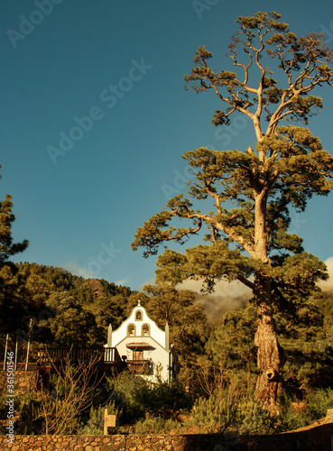 © Maxi Perez, Obraz premium Iglesia perdida entre el bosque de pinos. La Palma. Canarias.