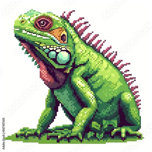 © thanawat, Obraz premium Iguana 8-bit cartoon isolated whitebackground