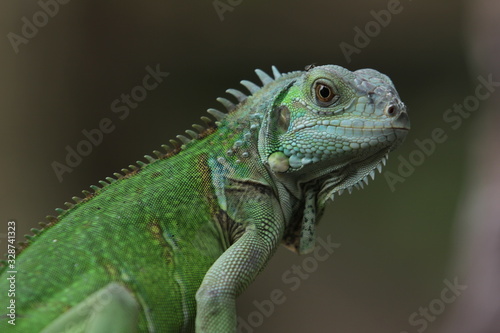 © Mufti Adi, Fototapeta premium Iguana Green is a genus of herbivorous lizards that are native to tropical areas of Mexico, Central America, South America, and the Caribbean.