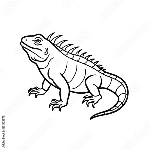 © kamrunnaher, Obraz premium iguana isolated line art on white background