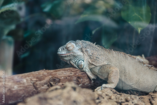 Fototapeta premium iguana on a tree, lizard, eyes closed