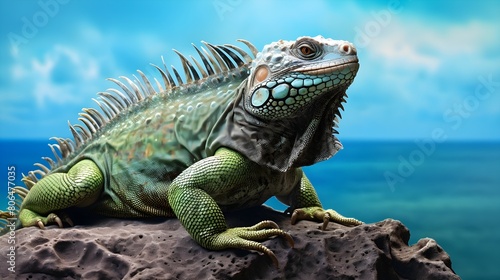 © Visual Aurora, Obraz premium Iguana perched on a rock