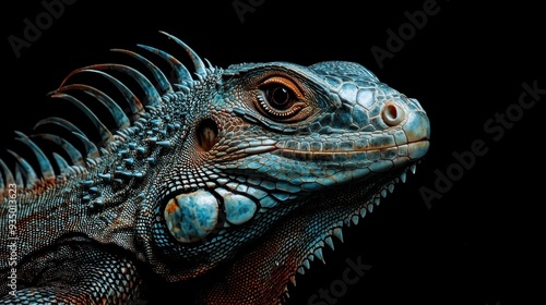 © BerkahStock, Fototapeta premium Iguana Portrait in Blue Hues