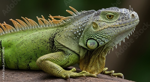 Obraz premium Iguana Resting Profile Portrait Reptile Close Up