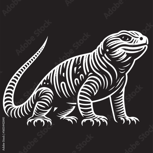 Obraz premium Iguana, vector illustration, isolated on black background, tattoo
