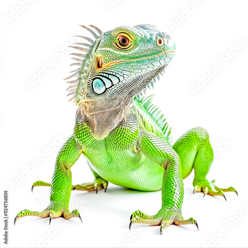 © Md Alamgir Artworks, Obraz premium Iguana with green scaly skin standing isolated on white background