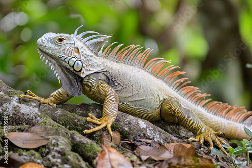 © Fabio, Obraz premium Iguana with its tail wrapped around a tree trunk