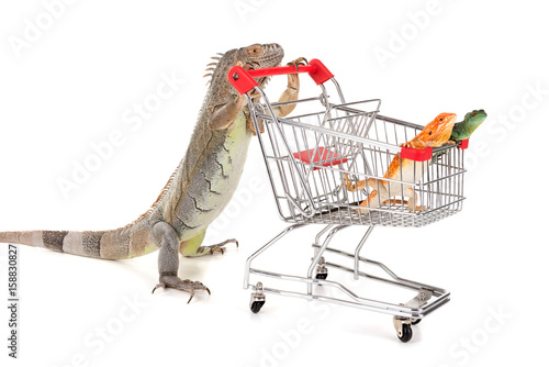 © Luis Louro, Fototapeta premium Iguana with shopping cart