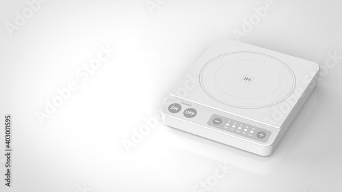 Fototapeta premium IH cooktop white white background one right angled 3D Render