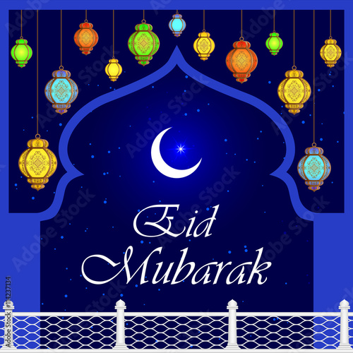 Naklejka premium Iilluminated lamp for Eid Mubarak Blessing background