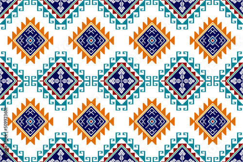 Fototapeta premium Ikat ethnic seamless pattern design. Aztec fabric carpet mandala ornaments...