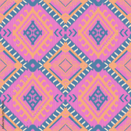 © Sasikharn, Fototapeta premium Ikat Print Digital Design, Handwoven Fabric, Bohemian Ikat Pattern, native pattern