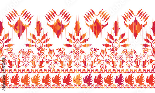 © K, Fototapeta premium Ikat seamless pattern,geometric design,motif ethnic handmade, Ikat ethnic tribal,boho colors seamless wallpaper. for background,fabric,wrapping,clothing,wallpaper,Batik,carpet,embroidery style.