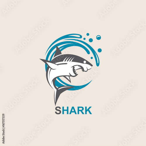 Obraz premium ikona wściekłego rekina z falami morskimi