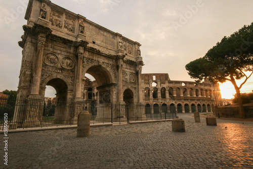 © Claudio Quacquarelli, Fototapeta premium Il Colosseo e altri monumenti di Roma. Una città piena di storia.