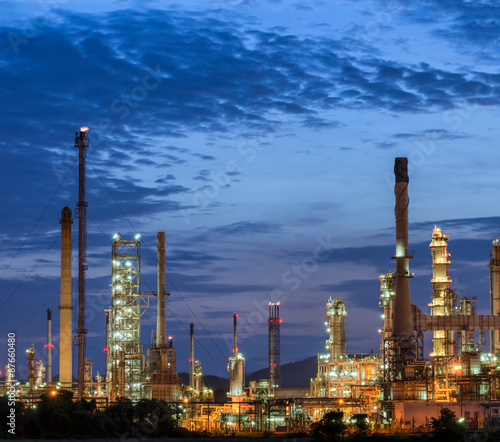 © weerasak, Obraz premium il rafineria o zmierzchu na tle nieba.