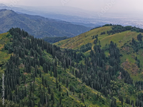 © Vladimir, Fototapeta premium Ile-Alatau National Park. Mountainous area with different vegetation near Almaty. The Tian Shan Mountains.