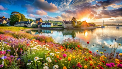 © Man888, Fototapeta premium Ile aux Moines, Brittany, France: Dreamy Double Exposure Landscape
