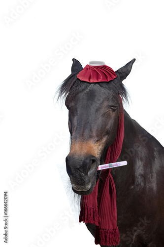 © anjajuli, Naklejka premium ill horse with thermometer have fever