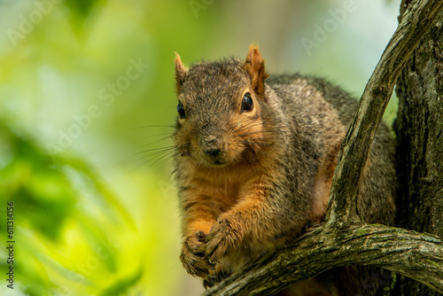 © Sandra J Photography, Fototapeta premium Illinois Squirrel, animals in the wild. Generative AI denoise