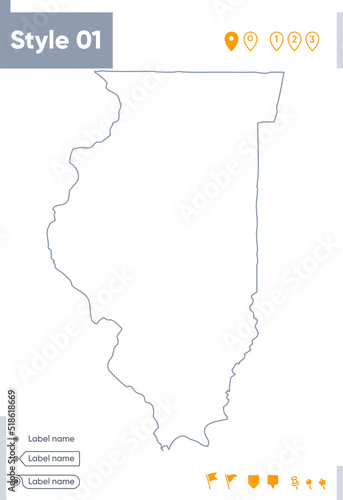 Obraz premium Illinois, USA - stroke map isolated on white background. Outline map. Vector map