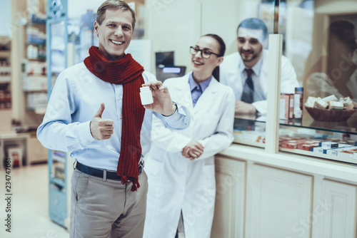 Obraz premium Illness man buys a medicament in pharmacy