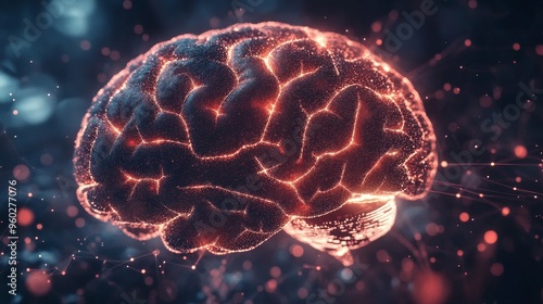 Fototapeta premium Illuminated brain illustration showcasing neural connections and abstract...