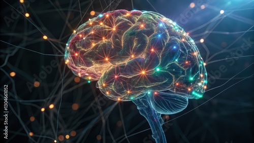 Fototapeta premium Illuminated brain with glowing connections, representing neural activity and...